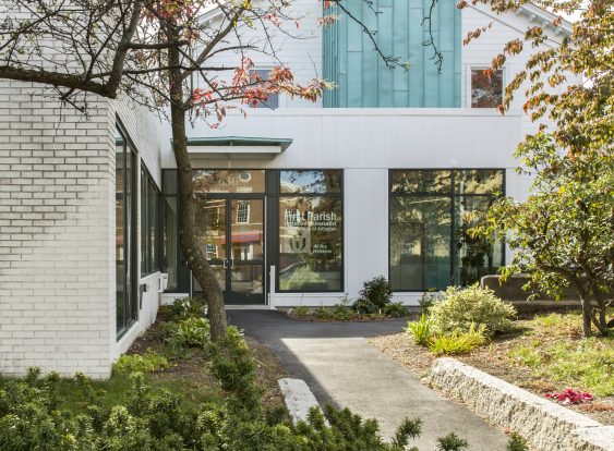 This phase focused on three significant issues critical to First Parish: accessibility, meeting space, and sustainability. The existing condition was challenging: a multi-level, disconnected, and somewhat tired series of buildings in need of refurbishment, which are heavily used seven days a week at all times of day by both First Parish and its tenant (the Sunshine Day Care Center).