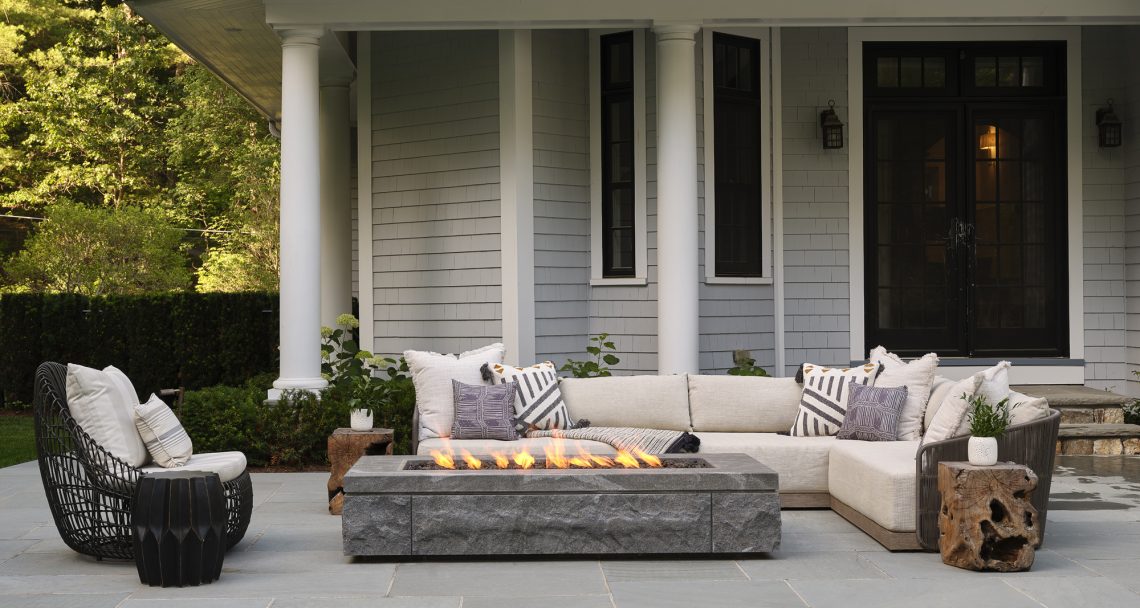 The backyard was transformed into an outdoor oasis, with multiple areas for gathering, relaxing, and entertaining. The new poolhouse features a full bathroom, wetbar, fireplace, pizza oven, and grill, while additional sitting areas surround the pool and patio.