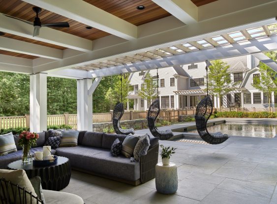 At this Weston property, an interiors overhaul, new poolhouse, and backyard transformation create a welcoming, vibrant home for a couple and their two young children.