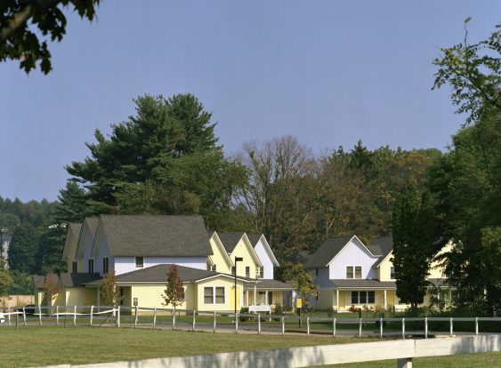 Located on a 3.3-acre site along the banks of the Mill River, the design creates large open shared spaces and arranges the homes in three clusters with four units each. Clusters were designed to maximize efficiency in a number of important areas: Units within each cluster share a common boiler for heating, and firewalls separating each unit from the next to maximize insulating properties between them, while reducing construction costs.