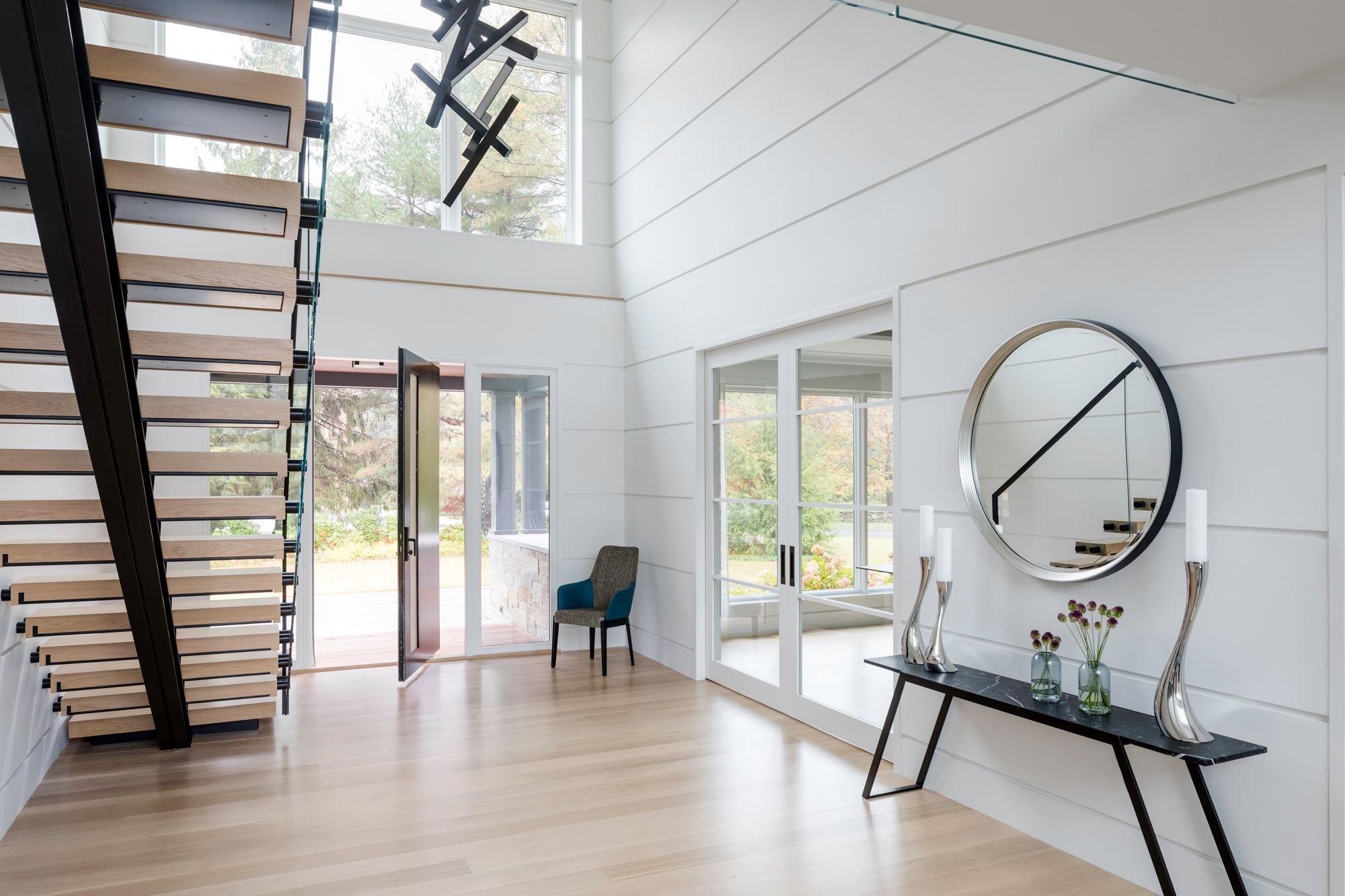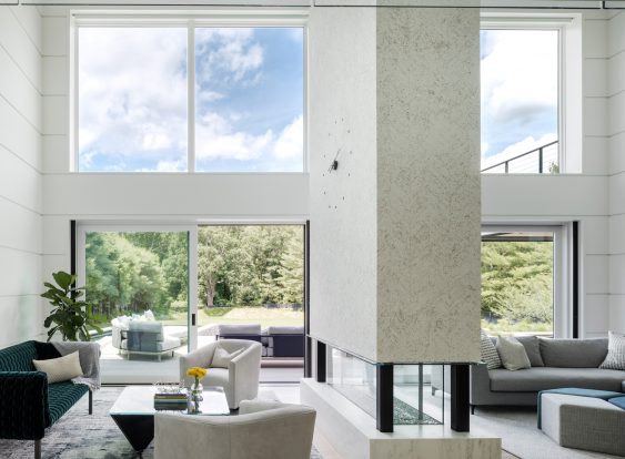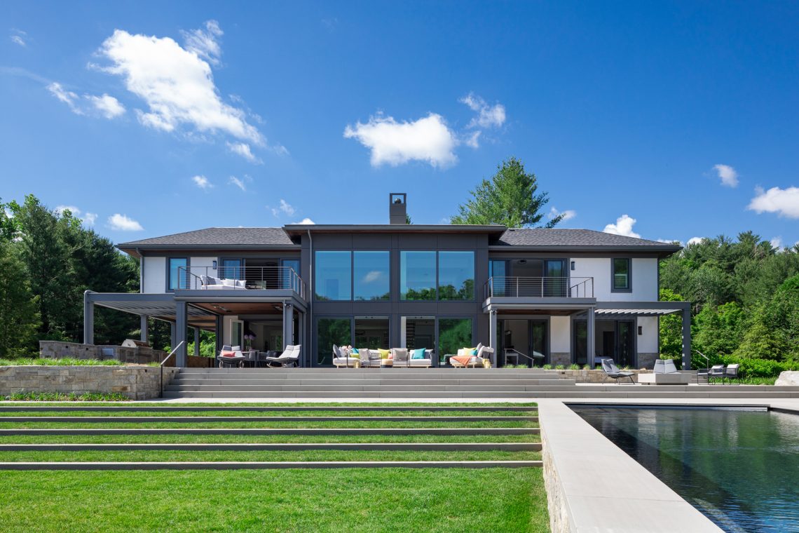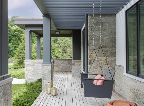 This contemporary new build was designed to connect with the surrounding landscape and provide a young couple with their forever home. With its minimalist style and a simple palette enriched by jewel tones and natural materials, the home has a distinctly urban feel despite its suburban location.